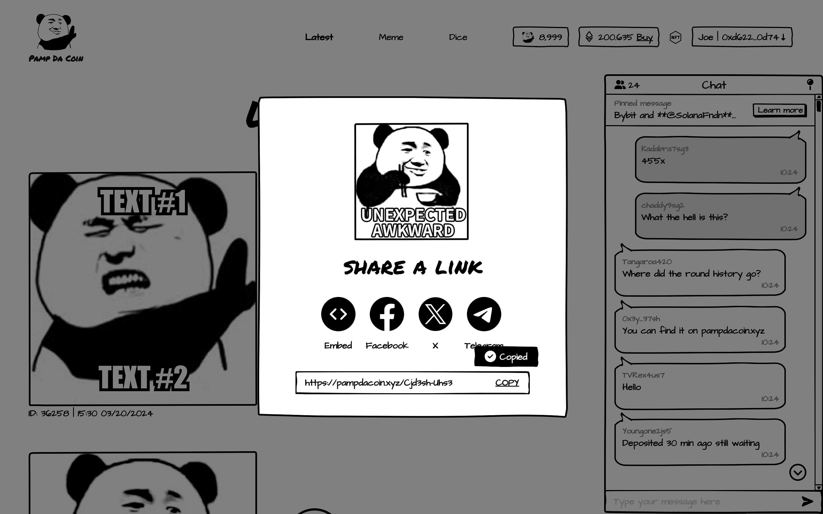 The share feature enables users to effortlessly share their favorite meme NFTs with friends and followers on various social media platforms, spreading laughter and mirth throughout their digital networks.